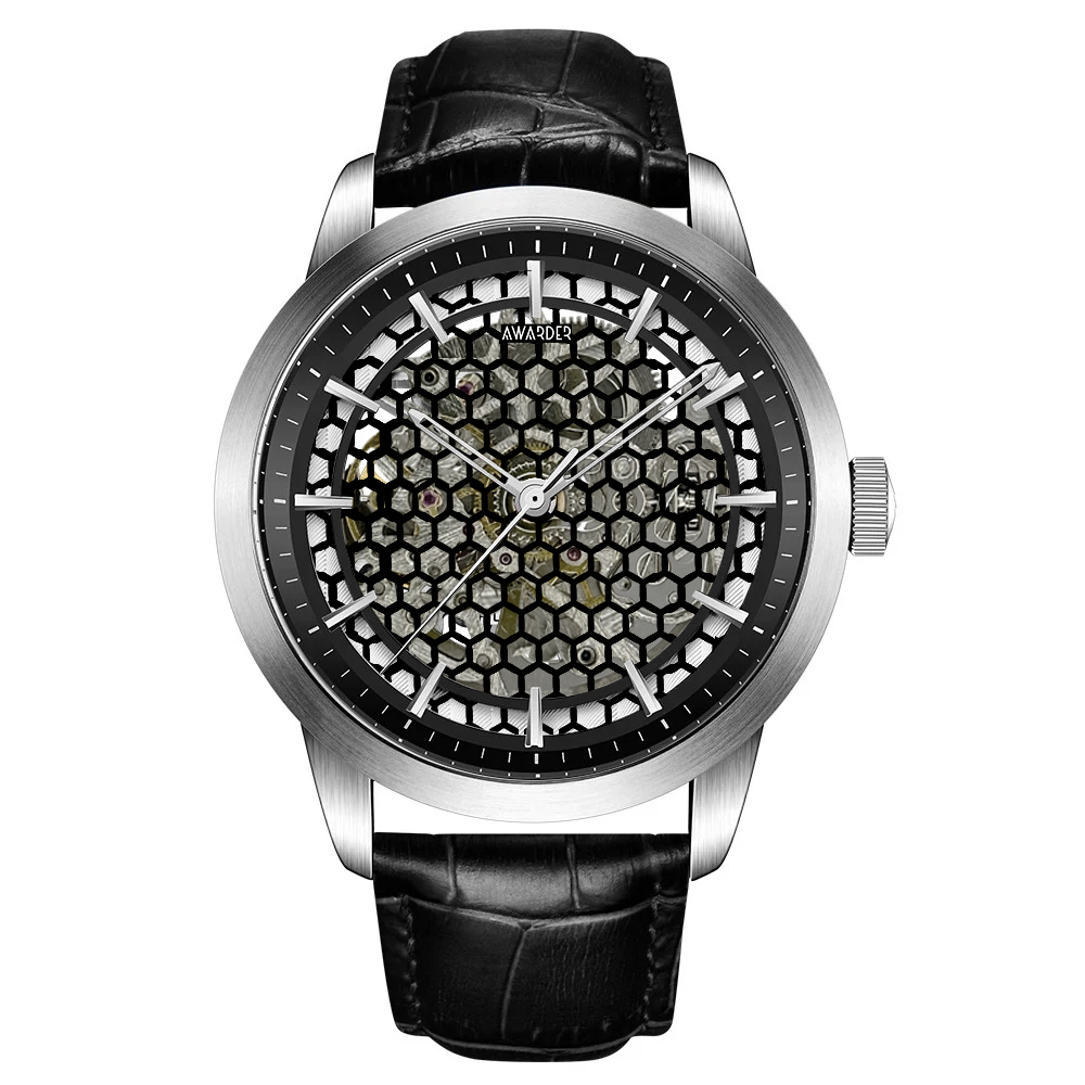 Представляємо годинник Awarder 043 — втілення елегантності та витонченого стилю для сучасного чоловіка. Цей класичний годинник має стальний корпус діаметром 48 мм зі сріблястим покриттям, що підкреслює його благородний вигляд. Чорний шкіряний ремінець завдовжки 26 см не лише забезпечує комфорт, але й надає додаткову вишуканість.