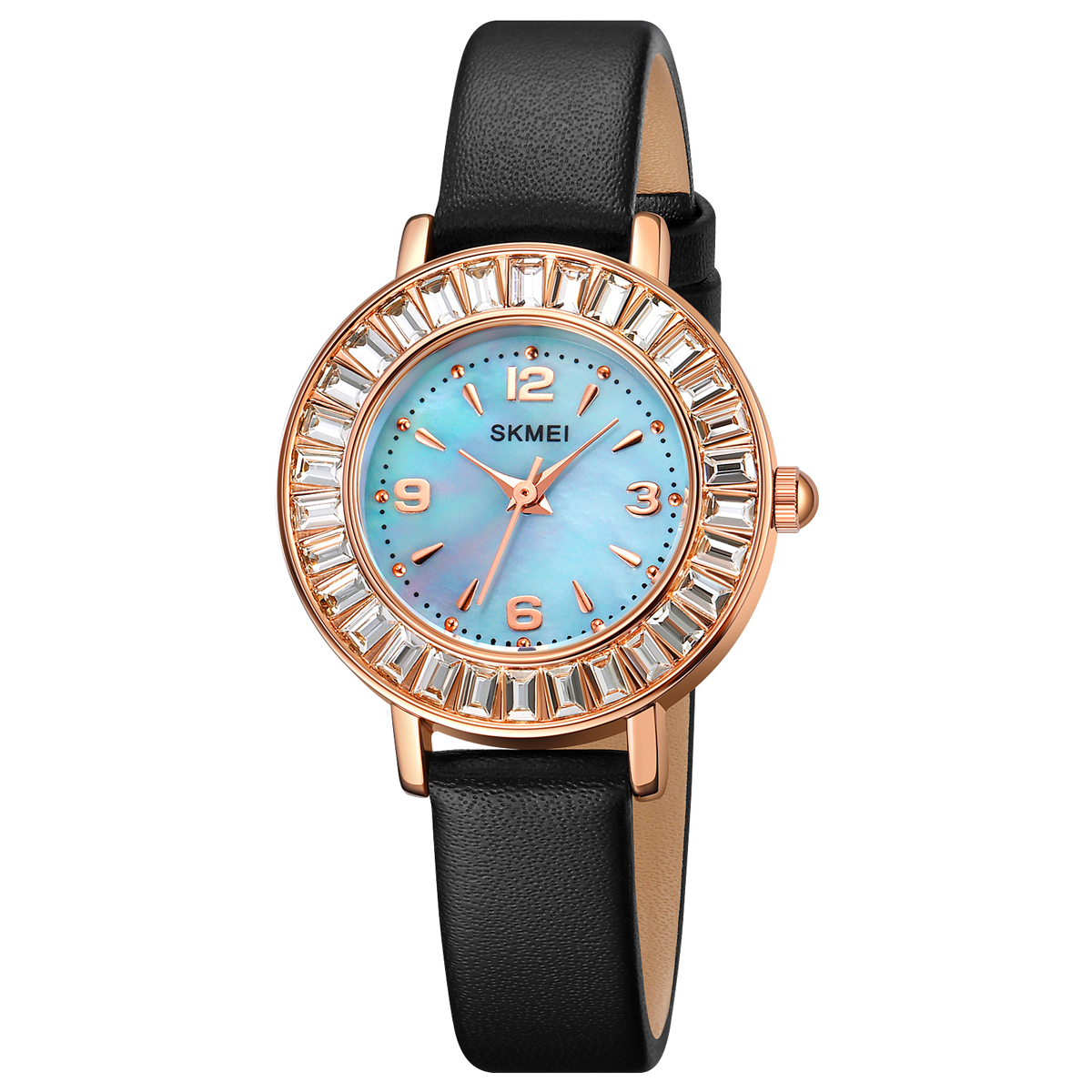 Годинник Skmei 1978BU Blue – стильний класичний аксесуар для жінок, виконаний у елегантному золотистому корпусі з металу. Ремінець із шкіри чорного кольору забезпечує комфортне носіння. Модель має водонепроникність до 30 м та кварцовий механізм, що гарантує точність у вимірюванні часу. Циферблат оснащений арабськими цифрами та індексами, а мінеральне скло забезпечує надійний захист. Розміри годинника – 36 х 30 мм, вага – 25 г. Довжина ремінця становить 22 см, ширина – 12 мм. Годинник має 12-місячну гарантію, що підтверджує його якість та надійність. Бренд: Skmei.