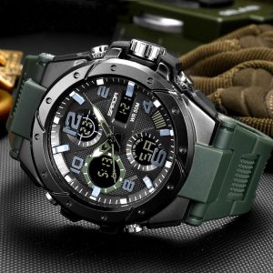 Годинник Sanda 6008 Green-Black – це ідеальний вибір для активних чоловіків. Має спортивний стиль та виконаний із надійного пластику. Водонепроникність на рівні 50 WR забезпечує захист від вологи. Кварцовий і електронний механізми гарантують точність показань. Цей годинник оснащений безліччю функцій: годинник, хвилини, секунди, дата, день тижня, місяць, будильник, секундомір та підсвічування. Діаметр корпусу складає 48…