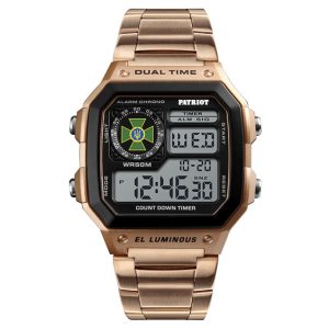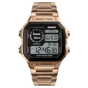 Наручний годинник Patriot 011RG — стильний та функціональний аксесуар для кожного, хто цінує сучасний дизайн і надійність. Годинник виготовлений з полікарбонатного корпусу чорного кольору і оснащений розкішним ремінцем з нержавіючої сталі в відтінку рожевого золота. Його квадратна форма та електронний циферблат із арабськими цифрами роблять його ідеальним вибором для повсякденного носіння в стилі casual або…