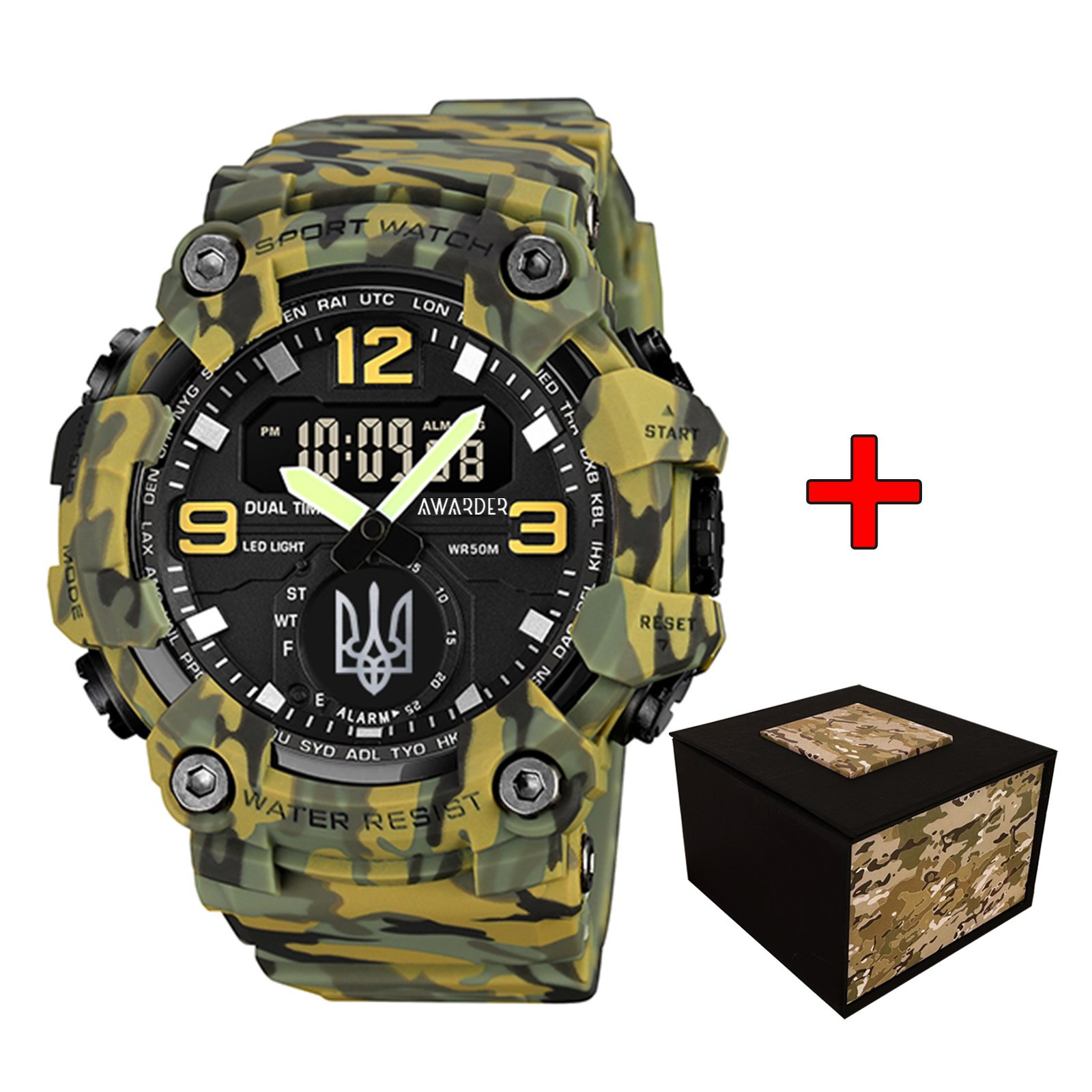 Представляємо наручний годинник Awarder 003CMGRUASI, що поєднує стиль та функціональність у сучасному дизайні. Цей годинник вражає своїм спортивним та армійським виглядом, виконаним у стильному зеленому камуфляжі. Основні характеристики включають водонепроникність до 50 м, що робить його ідеальним компаньйоном для активного відпочинку та спорту.