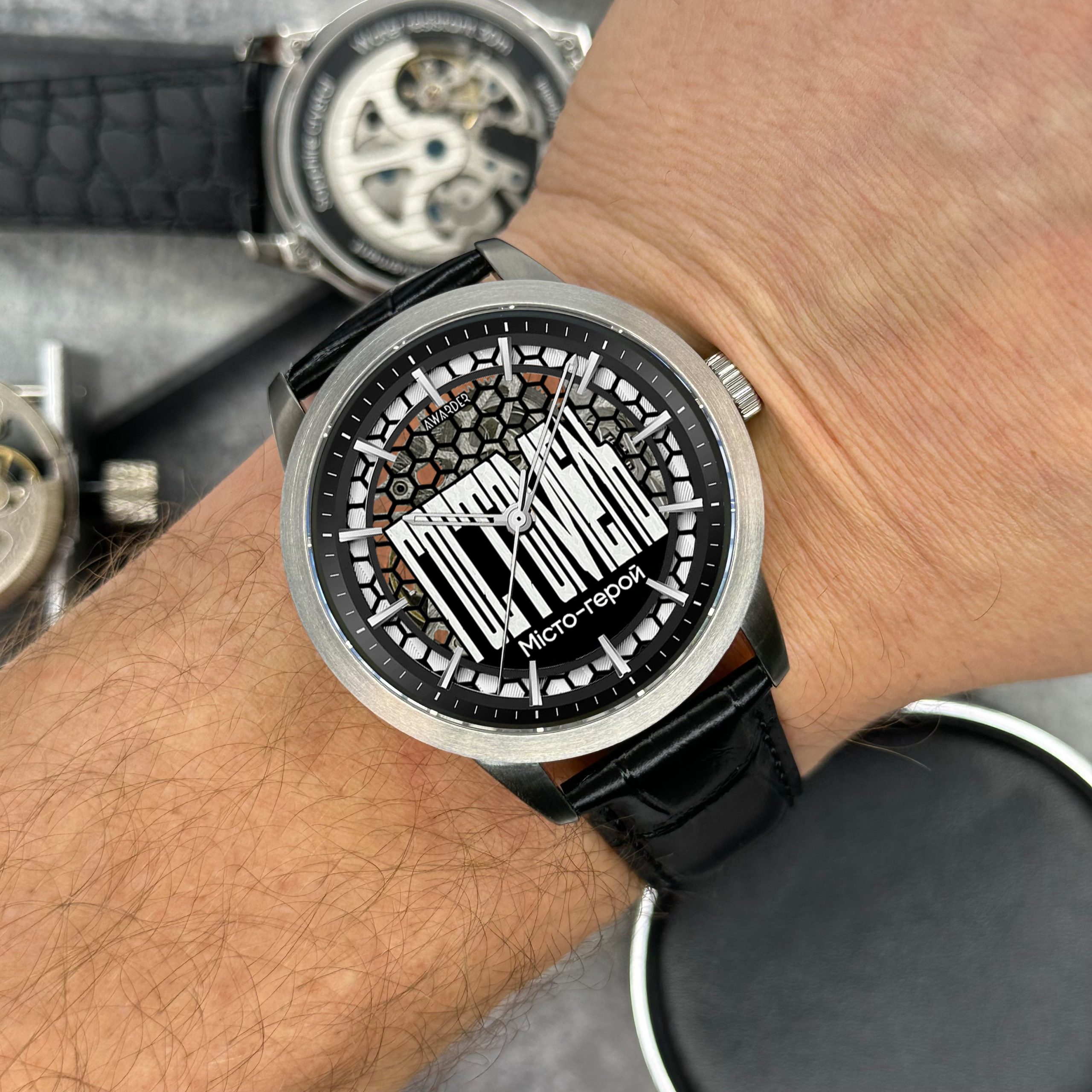 Представляємо вам годинник Awarder 043 “Гостомель I” – стильний аксесуар для сучасного чоловіка, який поєднує у собі елегантність та практичність. Цей водонепроникний годинник (до 30 м) виготовлений з нержавіючої сталі, що забезпечує тривалу експлуатацію. Чорний шкіряний ремінець надає йому класичного шарму.
