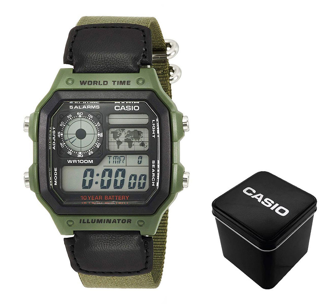 Відкрийте для себе спортивний годинник Casio AE-1200WHB-3B – ідеальний супутник для активного стилю життя. Цей надійний кварцовий годинник з електронним циферблатом поєднує в собі сучасний дизайн і функціональність. Алюмінієвий полімерний корпус зеленого кольору захищає його від води до 100 метрів, що робить його відмінним вибором для плавання та інших водних видів спорту.