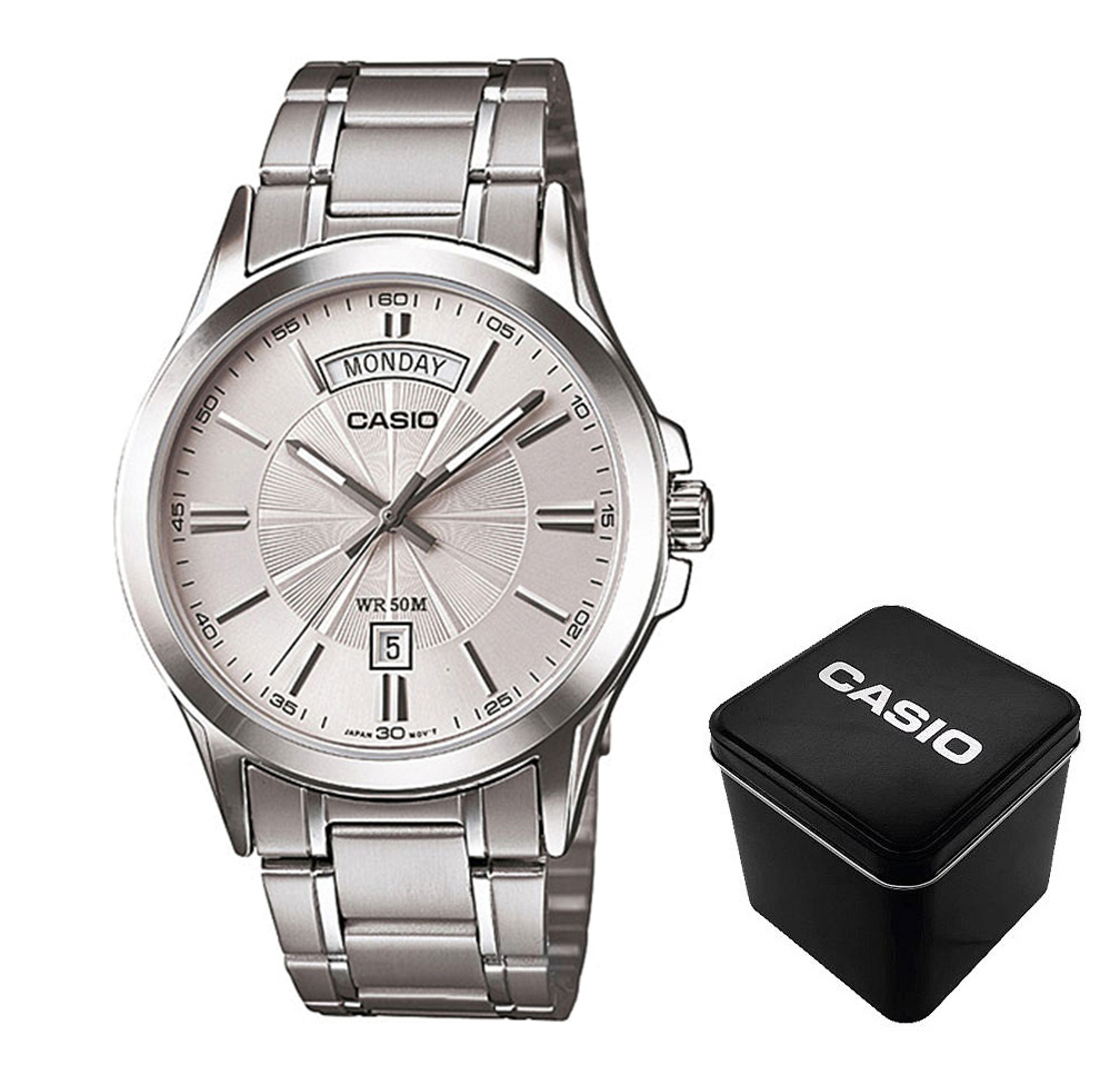 Представляємо вам чоловічий годинник Casio MTP-1381D-7A, який поєднує в собі класичний стиль і сучасні технології. Цей елегантний годинник має круглу сталеву корпус і сріблястий браслет, що забезпечує надійність та комфорт при носінні.
