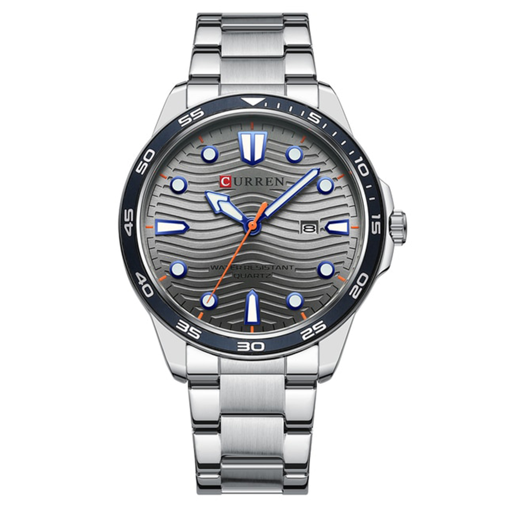 Модель оснащена функцією календаря та має стрілочний циферблат з індексацією годин, хвилин, секунд та числа. Сріблястий колір корпусу та ремінця надає годиннику елегантного вигляду. Довжина ремінця становить 23 см, а ширина — 22 см. Годинники мають гарантію на 12 місяців та відзначаються стильним casual і класичним дизайном. Вага моделі складає 123 г, що забезпечує комфорт під час носіння. Оригінальний продукт з Китаю бренду Curren, ідеально підходить для будь-якої ситуації.
