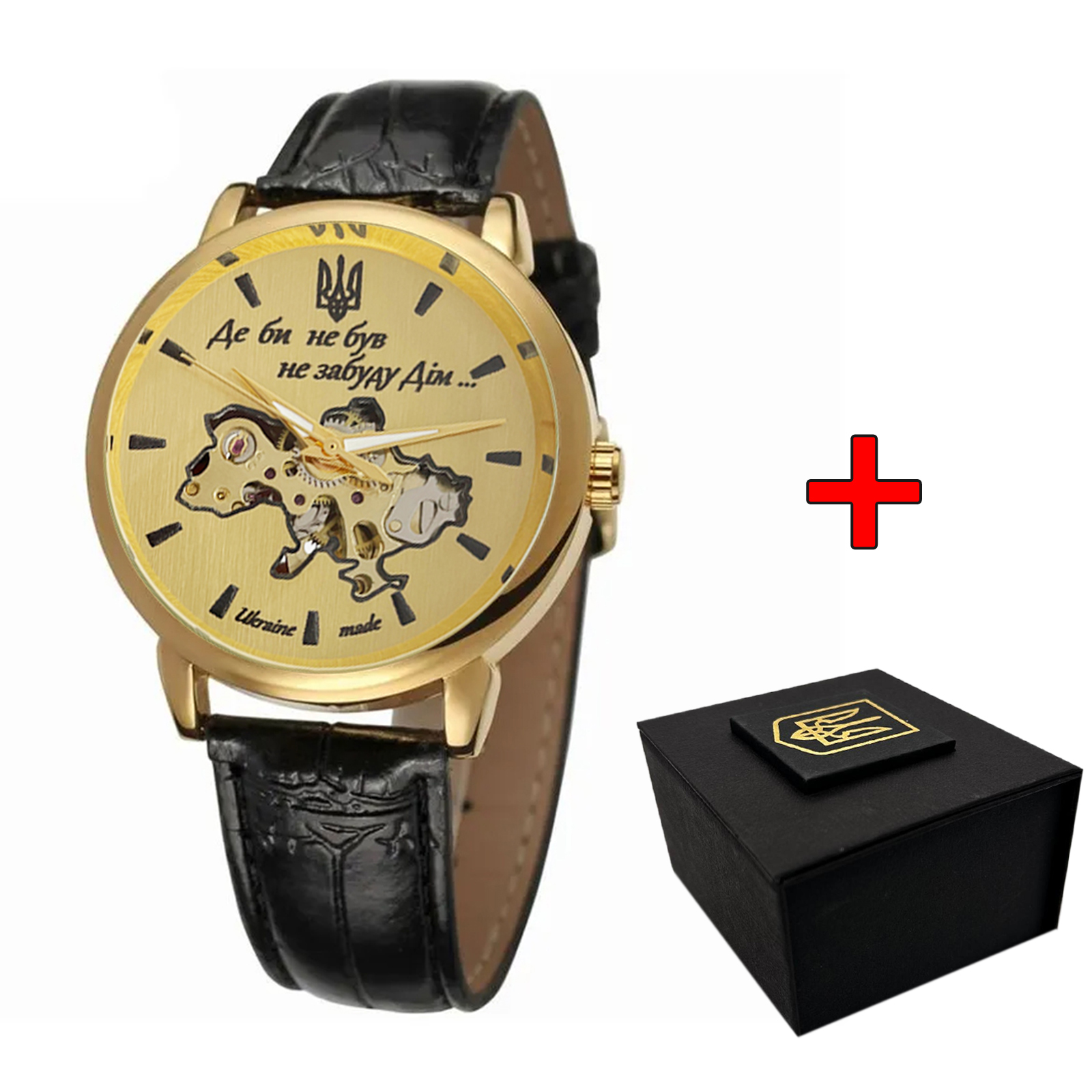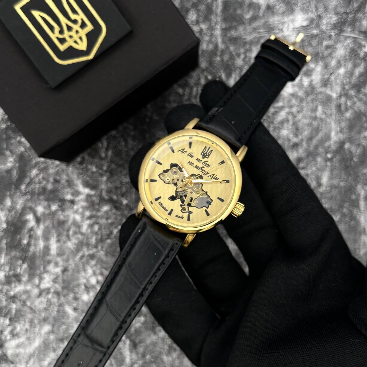 З виготовленим з металу корпусом золотистого кольору та чорним шкіряним ремінцем, годинник не лише виглядає розкішно, але й забезпечує комфорт під час носіння. Він обладнаний міцним мінеральним склом, яке захищає від подряпин і механічних ушкоджень.