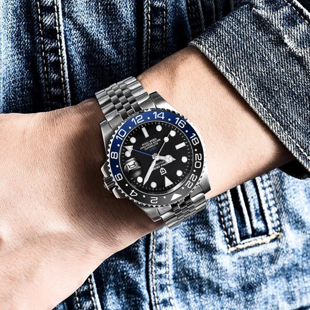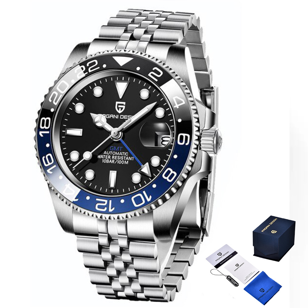 Годинник Pagani Design PD-1662 в сріблястому, чорному та синьому кольорах є ідеальним вибором для сучасного чоловіка. Його корпус виготовлений з нержавіючої сталі, а сапфірове скло забезпечує високу стійкість до подряпин. Механічний з автопідзаводом механізм підкреслює надійність та точність. Годинник водонепроникний до 100 м, що робить його придатним для активного способу життя. Стильний круглий корпус розміром 40 х 40 мм доповнений браслетом із нержавіючої сталі шириною 20 мм та довжиною 22 см. Люмінесцентна підсвітка забезпечує читаємість в темряві, а календарна функція додатково підвищує його практичність. Гарантія на годинник становить 12 місяців, а країна виробника – Китай.