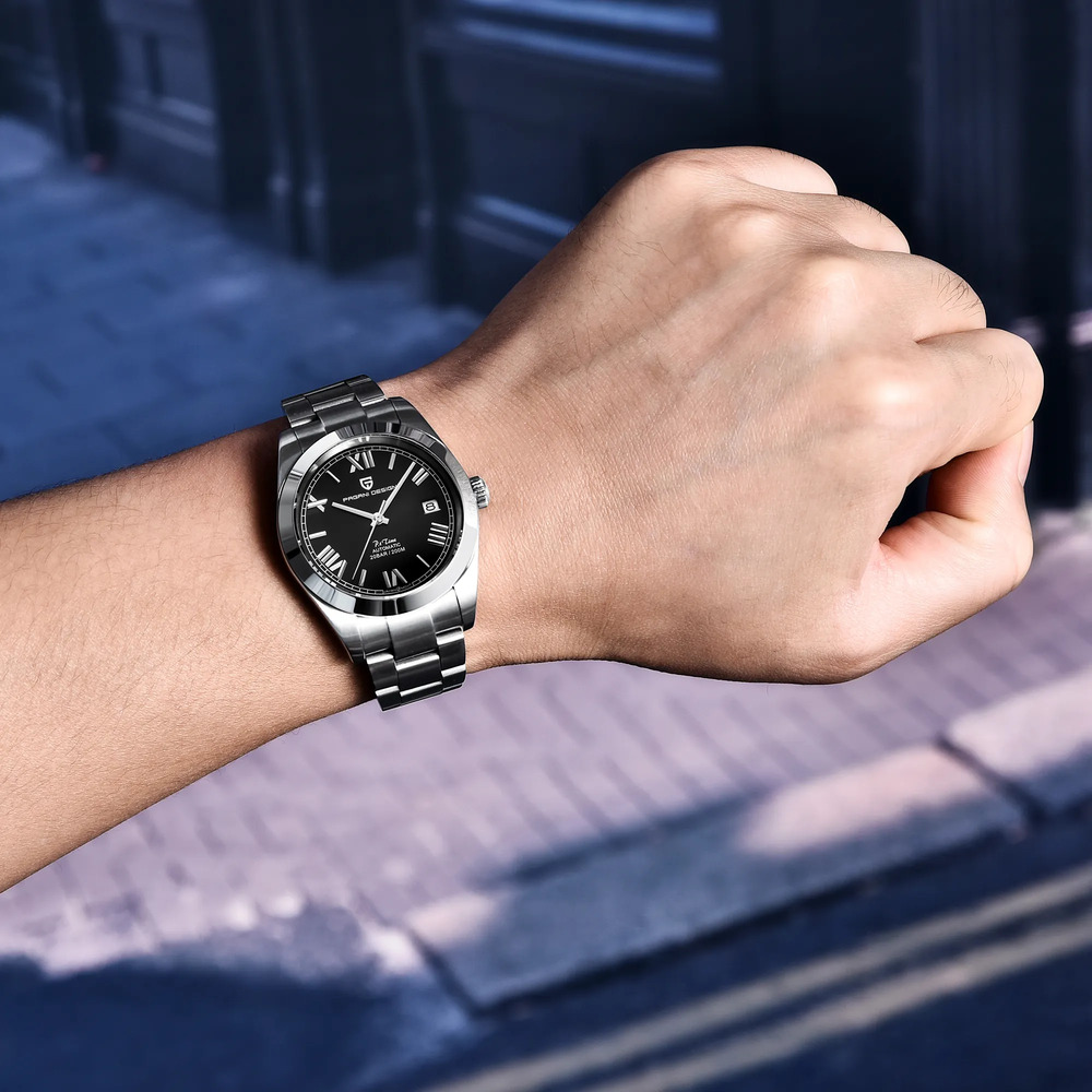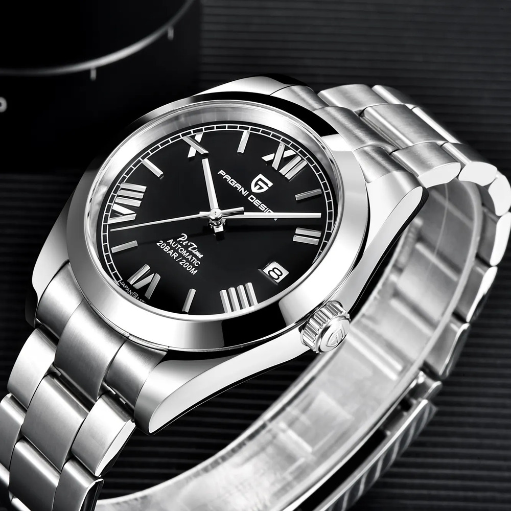 Цей елегантний чоловічий годинник від бренду Pagani Design — ідеальне поєднання стилю та функціональності. Корпус виконаний з високоякісної нержавіючої сталі сріблястого кольору, а сапфірове скло забезпечує чудову стійкість до подряпин. Механічний механізм з автопідзаводом гарантує точність і надійність, а функція календаря дозволяє відстежувати дати.