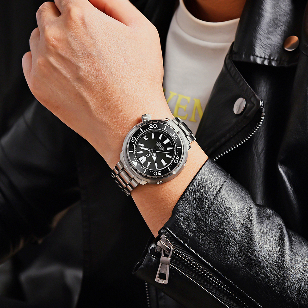 Модель має водонепроникність до 300 метрів, що робить її ідеальною для водних видів спорту. Сапфірове скло захищає циферблат від подряпин, а люмінесцентна підсвітка забезпечує видимість у темряві. Циферблат з індексами інтуїтивно зрозуміло показує години, хвилини та секунди, а також дату.