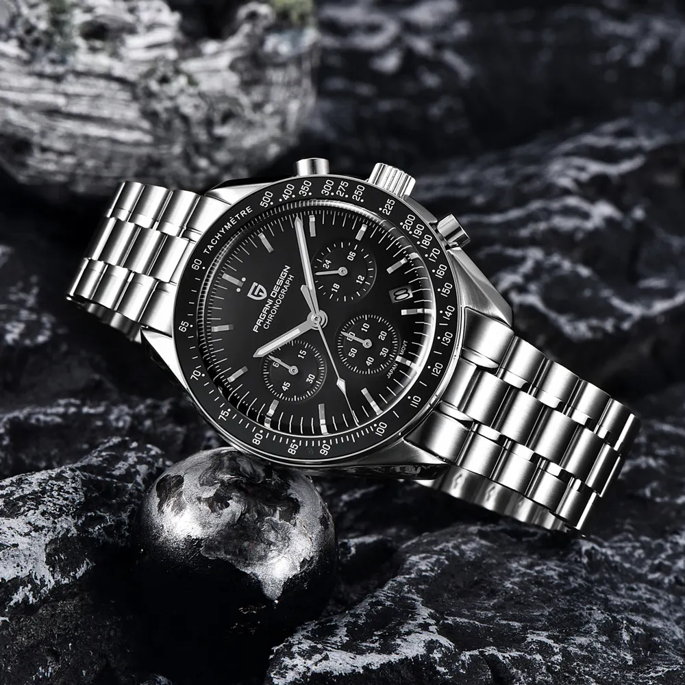 Годинник Pagani Design PD-1701 Silver-Black поєднує в собі стиль і функціональність. Виготовлений з нержавіючої сталі, він має водонепроникність до 100 м, що робить його чудовим вибором для активних чоловіків. Сапфірове скло забезпечує високу стійкість до подряпин. Часомір обладнаний квцаровим механізмом та функцією хронографа, що дозволяє легко відстежувати час. Класичний круглий корпус та стильний сріблястий колір вносять елегантність у будь-який образ. Люмінесцентна підсвітка забезпечує читабельність у темряві, а зручний браслет з нержавіючої сталі гарантує комфортне носіння. Годинник має гарантію на 12 місяців і підходить для casual і класичного стилів.