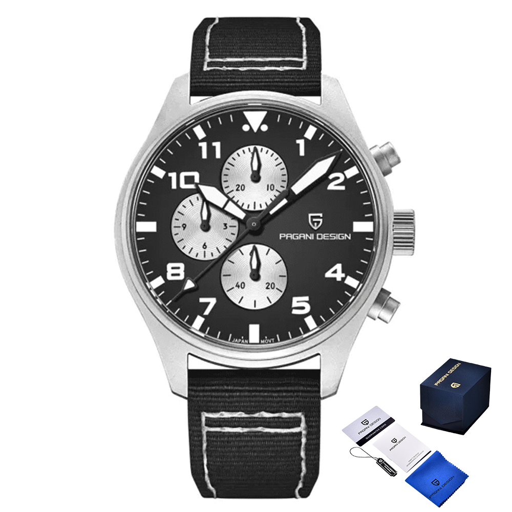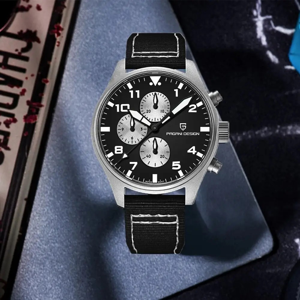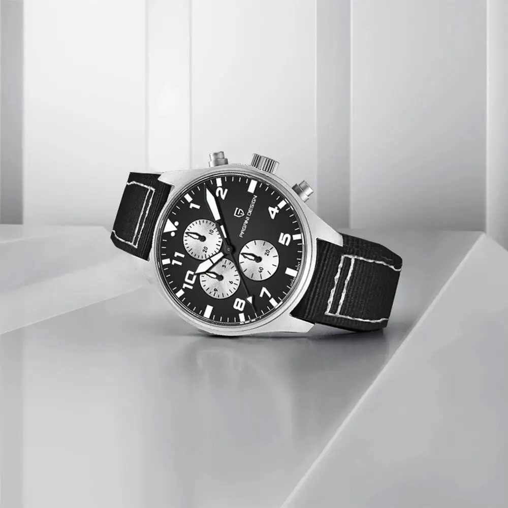 Чорний ремінець, виконаний з нейлону та шкіри, додає комфорту при носінні. Циферблат має стрілочний тип індикації з арабськими цифрами та індексами, забезпечуючи легкість зчитування часу. Годинник має гарантію на 12 місяців і стане чудовим доповненням до чоловічого стилю. Розміри 42 х 42 мм і вага 74 г роблять його зручним у носінні. Бренд Pagani Design гарантує високу якість та надійність.