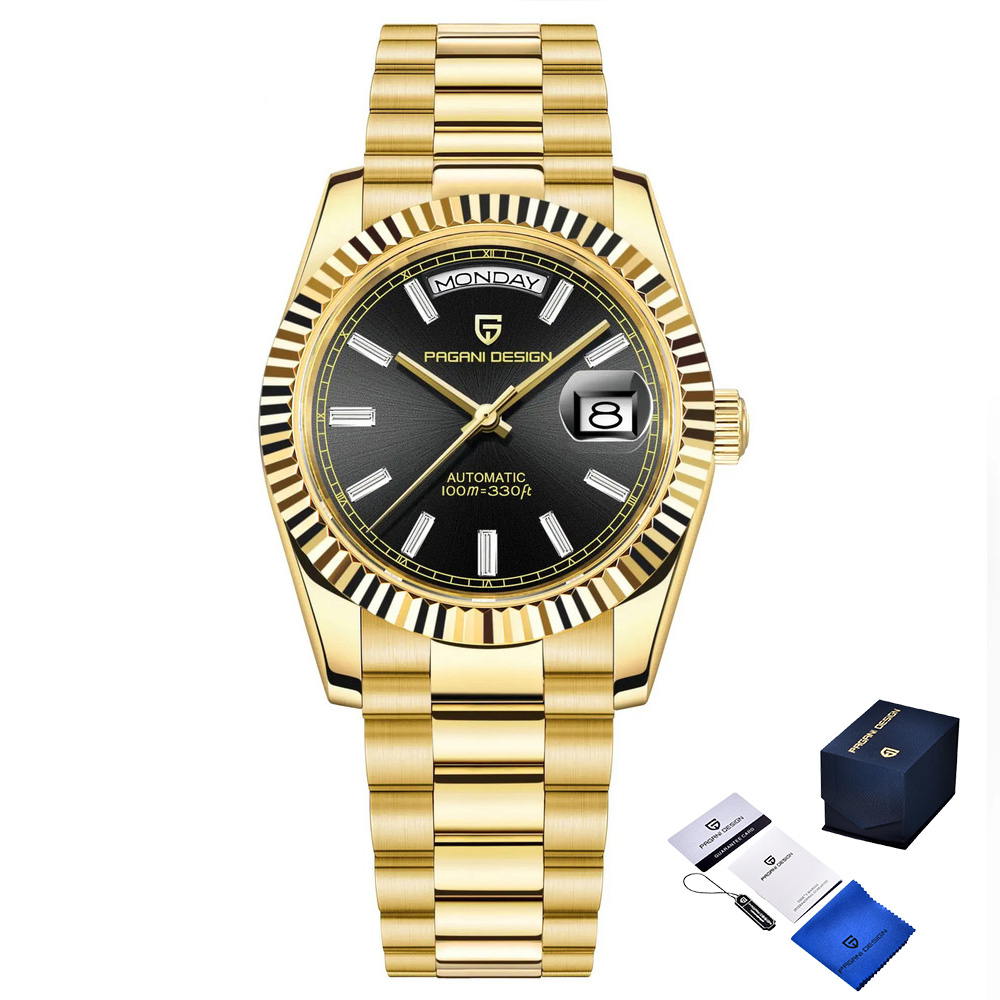 Механічний механізм з автопідзаводом гарантує точність, а стрілочний циферблат з календарем і індикацією днів тижня робить його ще більш зручним у користуванні. Годинник має розміри 36 х 36 мм, що робить його універсальним для будь-якого запястя. Він підходить для casual та класичного стилю. Гарантія на продукцію складає 12 місяців. Бренд Pagani Design відомий своєю якістю та надійністю, а цей годинник — чудовий приклад витонченого дизайну та сучасних технологій.