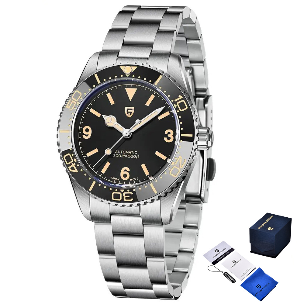 Годинники Pagani Design PD-1755 Silver-Black — це стильний та функціональний аксесуар для сучасного чоловіка. Виготовлені з нержавіючої сталі, вони забезпечують надійність та довговічність. Водонепроникність до 200 м робить їх відмінним вибором для любителів водних видів спорту. Сапфірове скло надійно захищає циферблат, а механічний механізм з автопідзаводом гарантує точність ходу.