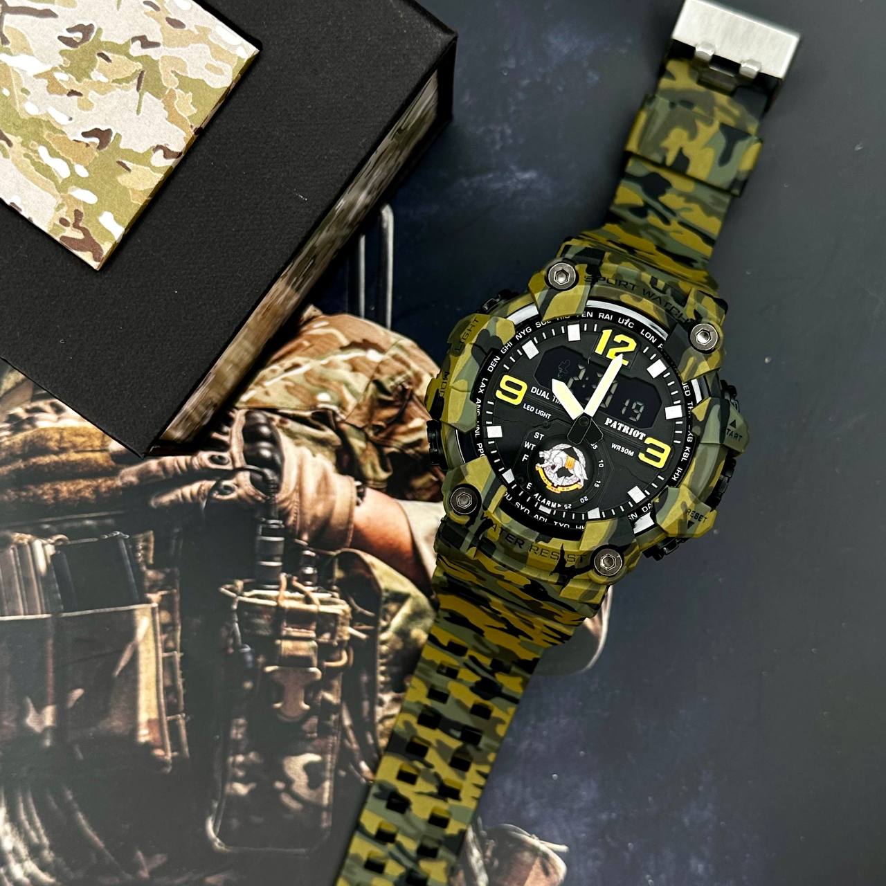 Представляємо наручний годинник Patriot 003CMGRSSO з камуфляжним дизайном, який стане ідеальним супутником для активних чоловіків. Цей стильний спортивний годинник має корпус з полімера і надійний каучуковий ремінець, що забезпечує комфорт та довговічність у використанні. Завдяки водонепроникності до 50 метрів, ви зможете тренуватися в будь-яку погоду без побоювань.