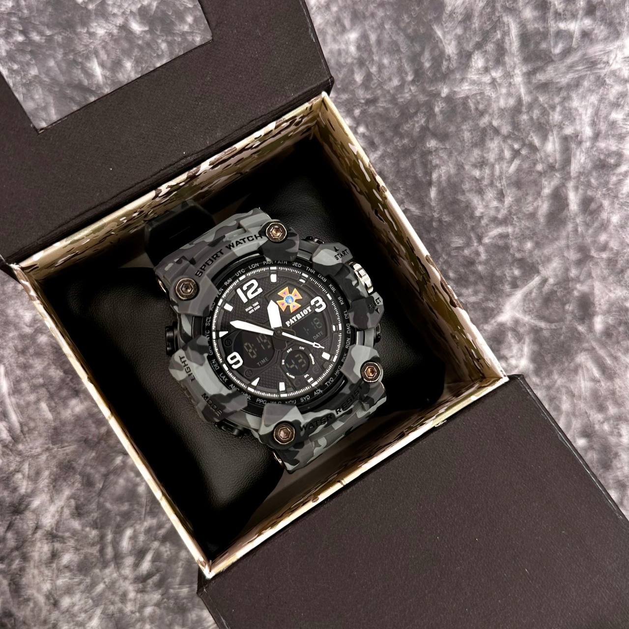 Представляємо вам наручний годинник Patriot 006CMGYDSNS, який поєднує в собі стильний дизайн та функціональність. Унікальне сіре камуфляжне забарвлення робить цей годинник ідеальним вибором для активних чоловіків, які цінують практичність у поєднанні з модою.