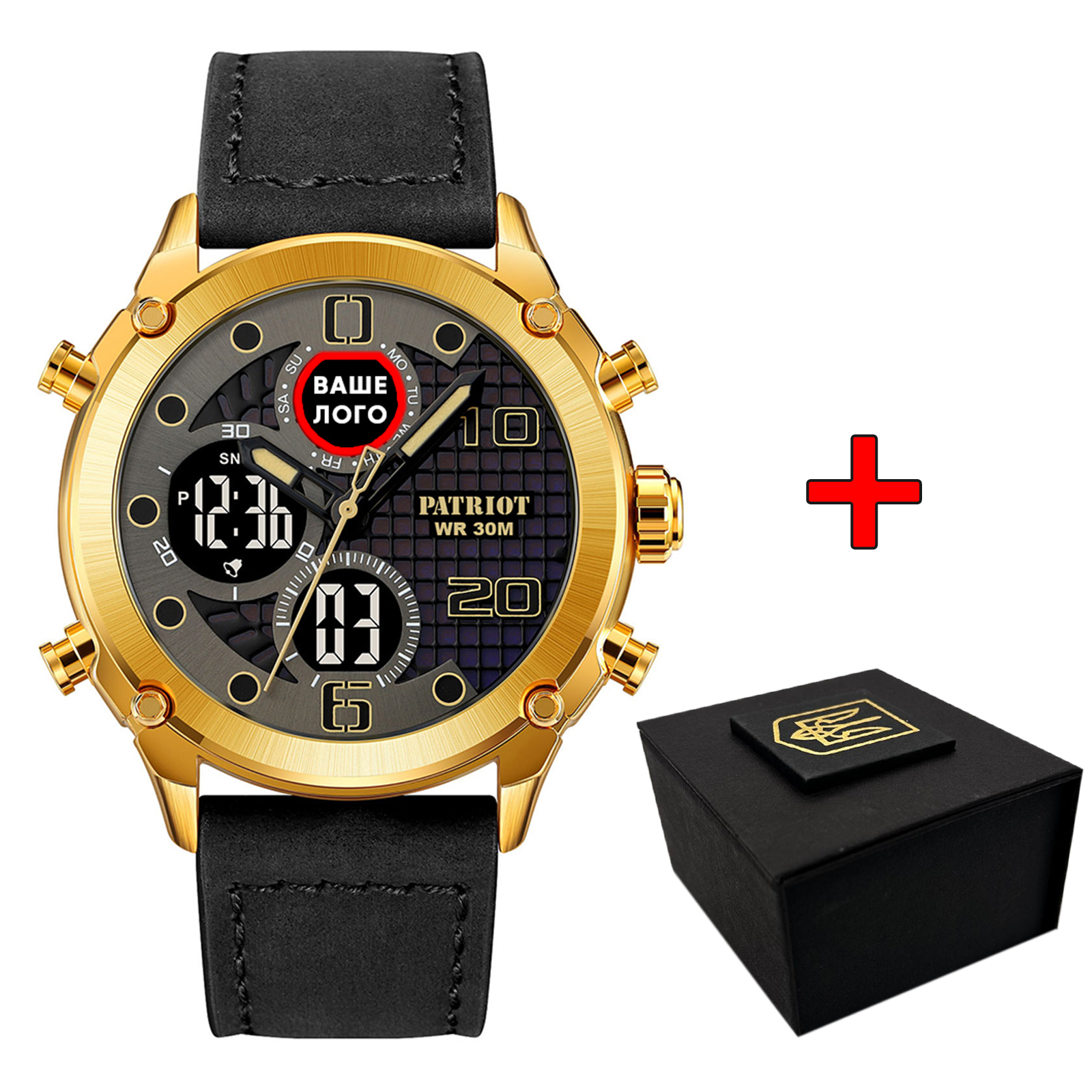 Представляємо наручний годинник Patriot 017 Ваше Лого Gold-Black – ідеальне поєднання елегантності та функціональності. Цей стильний аксесуар з класичним круглим корпусом діаметром 45,9 мм виготовлений з якісного металу в золотистому кольорі, що надає йому розкішного вигляду.