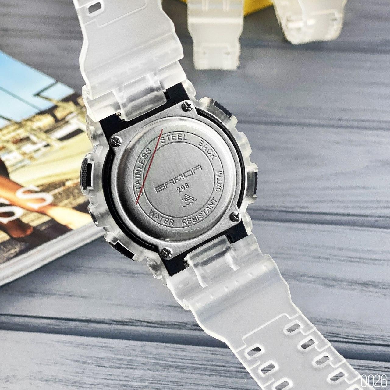 Сучасний спортивний годинник Sanda 298 Gold поєднує стиль та функціональність. Корпус виконаний з міцного пластикового матеріалу білого кольору, а також має водонепроникність до 30 метрів, що робить його ідеальним для повсякденного використання. Годинник обладнаний комбінованим циферблатом та мінеральним склом, стійким до подряпин.