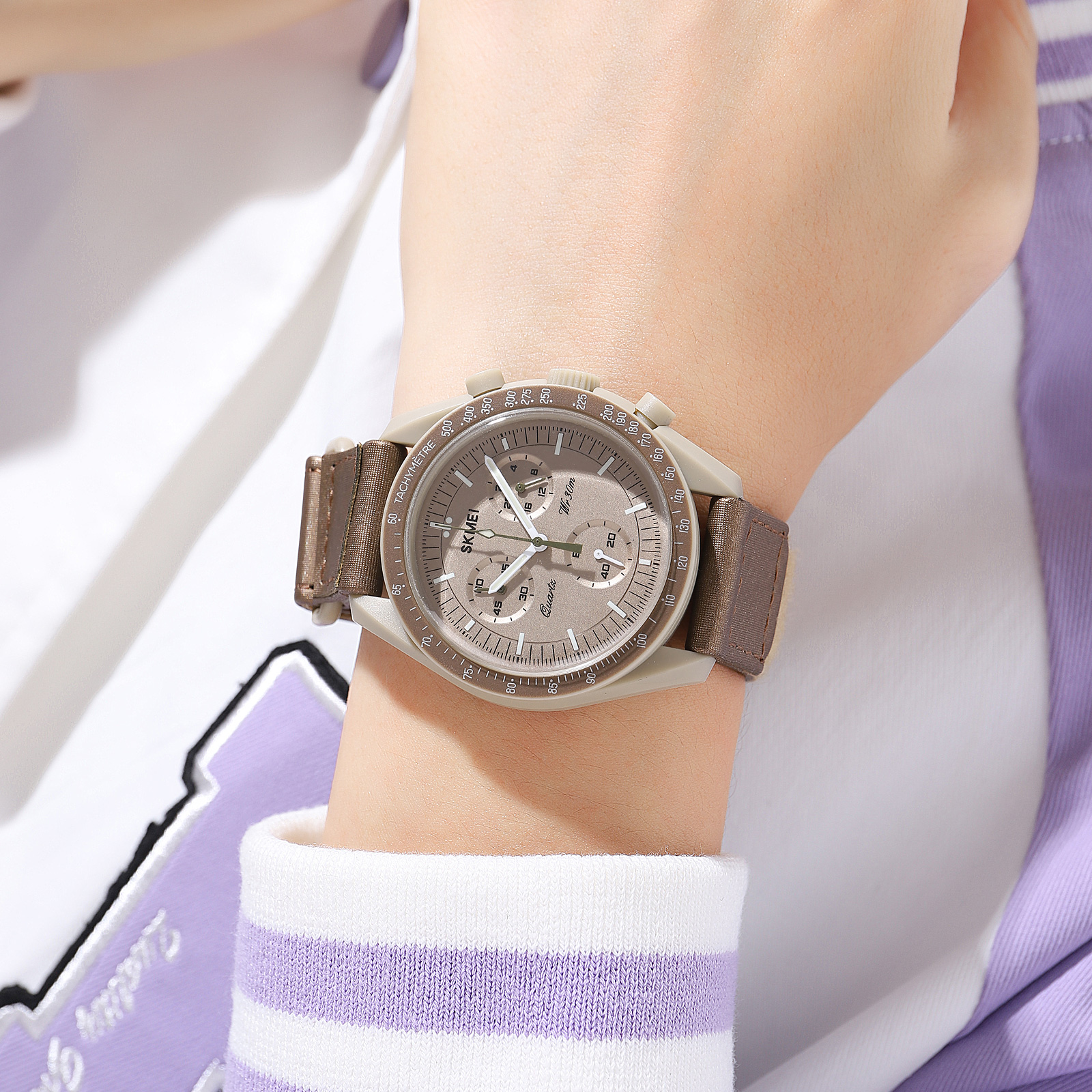 Годинник Skmei 1982KH Khacki поєднує в собі стильний дизайн та функціональність. Виготовлений з полікарбонату, він має водонепроникність до 30 м та кварцовий механізм. Корпус годинника круглої форми у кольорі хакі гармонійно комбінується з нейлоновим ремінцем того ж відтінку. Стиль casual робить його ідеальним вибором для будь-якого випадку. Циферблат включає індикацію годин, хвилин та секунд, а також функцію секундоміра. Годинник підходить для чоловіків, жінок та є універсальним аксесуаром. Країна виробництва – Китай, з гарантією на 12 місяців. Розміри годинника становлять 47 х 42 мм, вага – 28 г, а довжина ремінця – 26,5 см з шириною 20 мм.