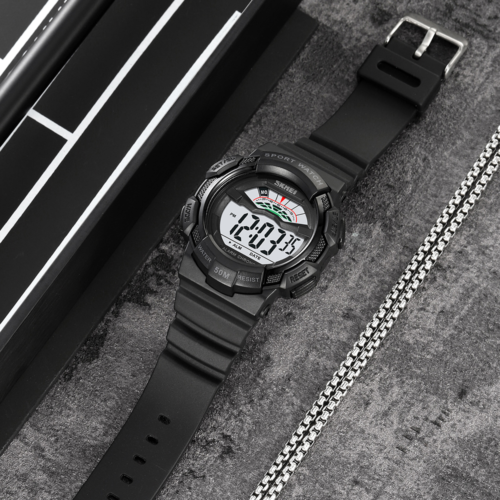 Годинник Skmei 2153BKWT Black-White – це стильний та функціональний аксесуар для чоловіків, який поєднує в собі спортивний дизайн і практичність. Виготовлений з міцного полімеру, цей годинник має округлу форму корпусу діаметром 45 мм та weighs лише 55 грамів, що забезпечує комфорт при носінні. Він водонепроникний до 50 м, а акрилове скло захищає дисплей від подряпин.