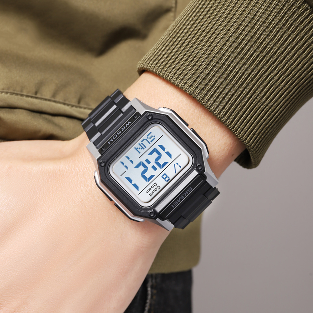 Годинник Skmei 2264BKSIWT – це стильний і функціональний аксесуар для чоловіків. Він має прямокутний корпус з поліуретану чорного та сріблястого кольору, що підкреслює його сучасний дизайн. Завдяки водонепроникності до 50 метрів, ви можете бути впевненими в його надійності.