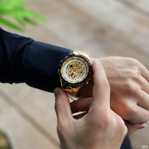 Представляємо стильний годинник Winner 8067 Gold-Black-White Red Cristal, який стане чудовим аксесуаром для сучасного чоловіка. Цей годинник поєднує в собі елегантний дизайн, виразний золотий колір корпусу та ремінця, а також оригінальні акценти чорного, білого та червоного кольорів. Діаметр корпусу складає 45 мм, а товщина – 16 мм, що забезпечує впевнений вигляд на зап’ясті.