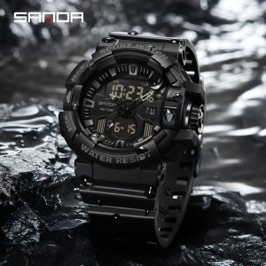 Опис годинника Sanda 3311 All Black Знайомтесь з атмосферним чоловічим годинником Sanda 3311 All Black — ідеальне поєднання стилю і функціональності для сучасного активного чоловіка. Цей спортивний годинник, виготовлений з міцного полімерного корпусу та надійного каучукового ремінця, відзначається водонепроникністю до 50 метрів, що робить його ідеальним супутником для занять спортом та активного відпочинку. Годинник обладнаний…